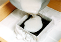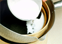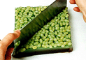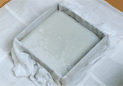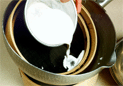 | 9.せいろにセルクルをおき、ハンカチを角がきれいにおさまるように敷き込 む。 敷き込んだところへ生地(a)を流し込み、強火で10分蒸す。 |