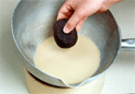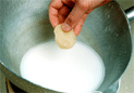 | 17.半返し(半分火が通 った状態)にする。(生地(b)とする) |
