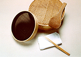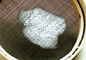 2.全体の2/3量の餡を平らにし、一気に押し出すように漉して、そぼろ状にする。 |