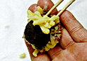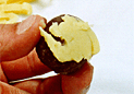 | 11.中餡が見えなくなるまで、きんとん餡を軽く押さえるようにして付ける。 |