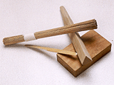 ささらで屋根に筋をつけて、「茅ぶき屋根」を表現する。