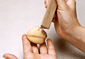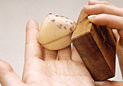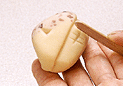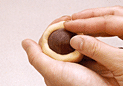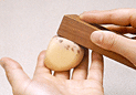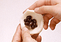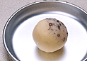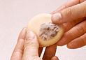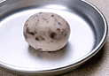 .黄色練切生地20gに小豆練切生地を、張り合わせる。