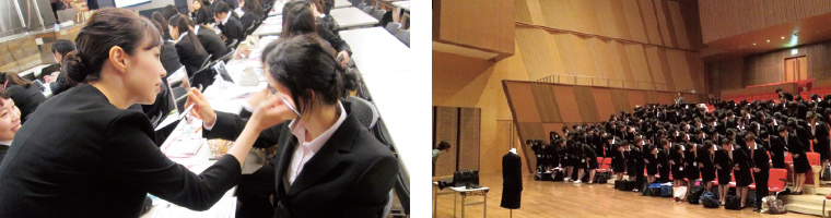 | プロに学ぶ! メイクアップ術 | 採用担当者に「うちの会社に入って欲しい」と感じてもらえるような就カツメイクを学びます。ビューティートレーナーと一緒に、実際にその場でメイクをしながら理解しましょう。 |
