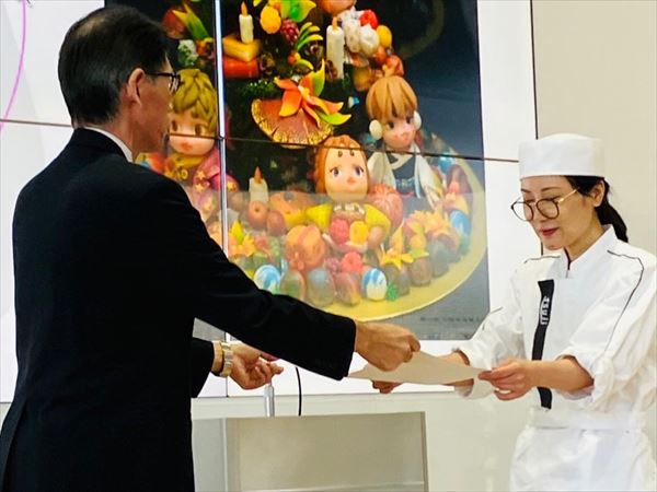 この度は栄えある賞を授与していただき、ありがとうございます。まさか優勝できるとは思っておらず、結果にとても驚きました。このコンテストに挑戦しようと思ったのは、昨年先輩たちのマジパン細工を見て、心を奪われたから。こんな世界があるのかと感動したんです。私も自分の世界を他の人に見せてみたい、見てほしいと思いました。