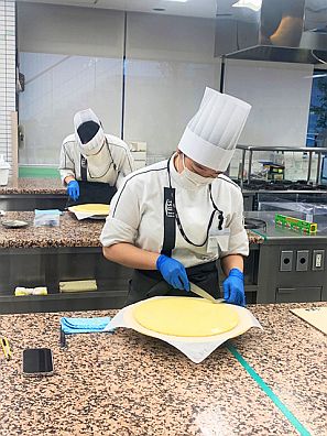 練習の初めの頃は、形にすることに必死というレベルでしたが、本番直前ともなると、見た目はもちろん、生地の食感、焼き加減など、さまざまな点に注意を払い、自ら判断できるように。とても印象的な姿でした。最終審査では、特に焼き加減と味について、審査員の方々も絶賛だったそうです。