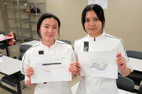 本校の和菓子クラスからは、10名・計12点の作品がエントリーされました。学生たちには強制ではなく自由参加としていましたが、非常に意欲が高く、先生も熱心にアドバイスを繰り返して完成したとのこと。絵を描くことは、和菓子作りにとって非常に重要です。普段の授業のなかでも、デザインプレゼンテーションを多く取り入れています。京菓子展の審査員は、あらゆるジャンルのプロフェッショナルですので、学生たちにとって非常に刺激的な挑戦の機会となったようです。