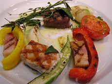 肉と野菜を串に刺して焼くだけのシンプルな料理です。味つけもオリーブ油とにんにく、香草だけであっさり......