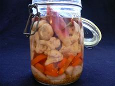 身近な野菜を何種類か取り合わせてピクルスにしてみました。野菜に塩をあてて、漬け汁でさっと煮て、その......