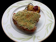 鶏肉のソテーにひと工夫。パセリとにんにくを混ぜ込んだパン粉、ペルシヤードとマスタードの香りが決め手......
