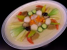 四川料理のコースには必ず野菜料理が入りますが、その中でもこの煮込みあんかけは色鮮やかで歯ざわりが良......