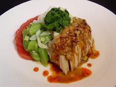 12.ゆで鶏の前菜 辛味ごまソースがけ(四川料理)
