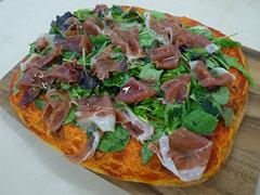 フォカッチャの生地を使って作るピザです。 トマトソース、モッツァレラチーズ、ベビーリーフ、生ハムを......