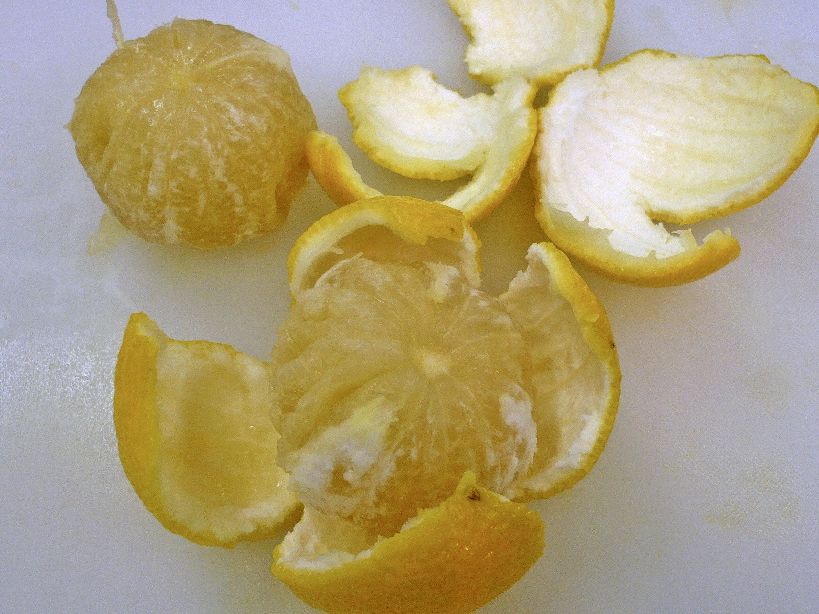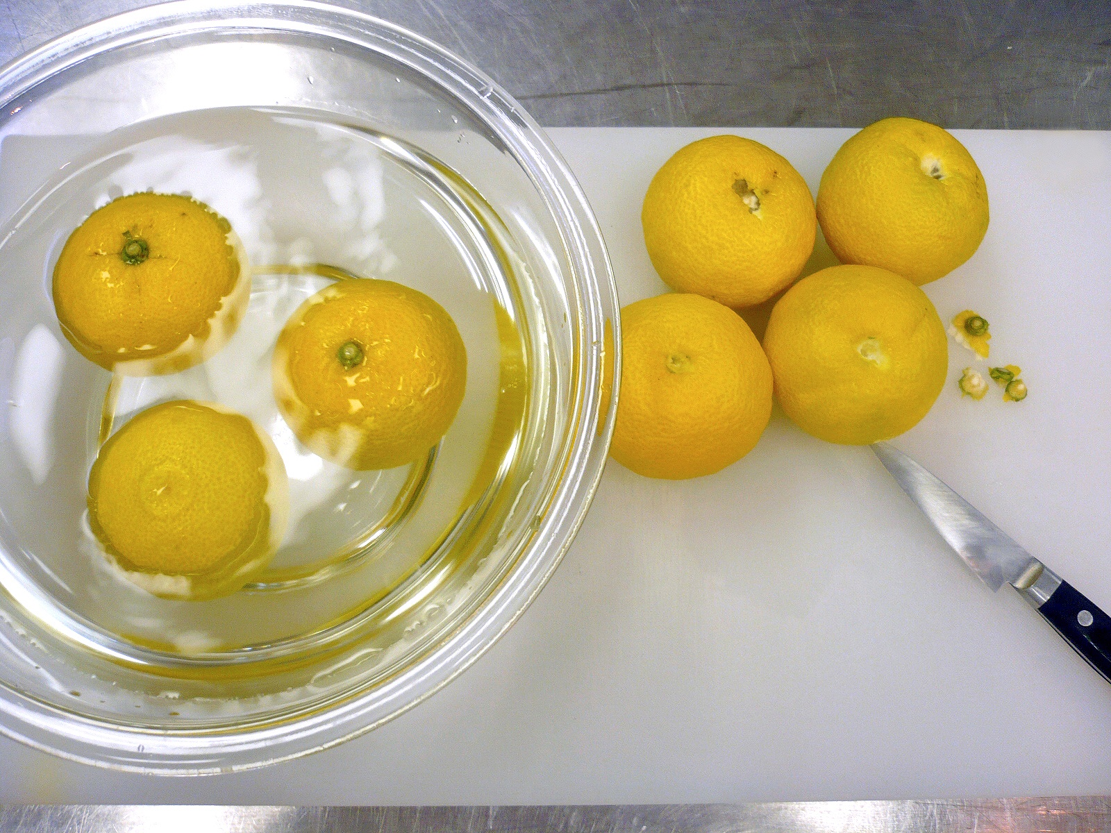 砂糖をまぶした皮とうらごしした果肉を合わせる。