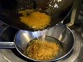 にんにくはみじん切りにし、中温の油できつね色に揚げる。エシャロットも同じようにして揚げる。(揚げるとにんにくは90g、エシャロットは120gになる)