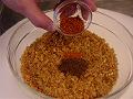 揚げたにんにく、エシャロット、パン粉をボウルに合わせ、粉山椒、一味とうがらしを加えて混ぜる。