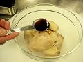 鶏手羽が温かい内に、しょうゆ大さじ1をまぶす。