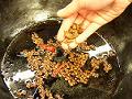 漬け込みタレの花椒を空鍋で炒めて香りを出す。