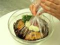 ビニール袋に入れると少ないタレで効率よく漬けることができる。