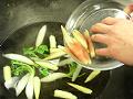 大葉はもんでから入れると香りがでる。