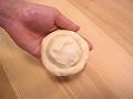 水油皮が冷めれば円形にのばし、油酥Aを丸めてのせ、包んで丸める。