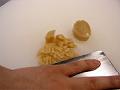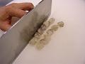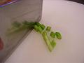 イカは切り込みを入れ1cm角に切る。グリ-ンアスパラガスはハカマをとり、7mm幅に切る。