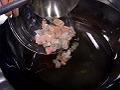 焼き豚、干しシイタケは小さな角切りにする。青ねぎはみじん切りにする。