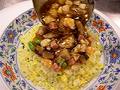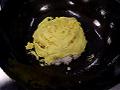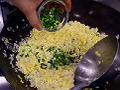 卵は溶きほぐす。鍋ならしをし、油大さじ1、溶き卵を入れ、半熟になったら、ご飯を入れ、卵ごとひっくり返す。
