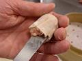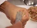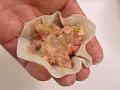 シュウマイの皮の四隅を少し切り落として、八角形にする。