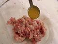シイタケ、しょうが、山クラゲ、卵白を加えて混ぜ、片栗粉、ごま油、ねぎ油、花椒粉、辣椒粉を入れる。