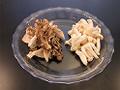 まいたけ、ぶなしめじは2cm適度にほぐして、2cm長さに切る。