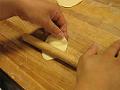 麺棒で端から2cmぐらいの縁を麺棒で伸ばす。だいたい直径8〜9cmの円形に伸ばす。