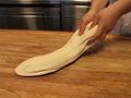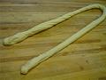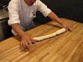 生地を徐々に引っ張りながら、棒状に延ばし、2つに折る。