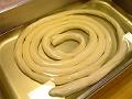 生地を2cmの幅に延ばしていき、さらにひねりを加えながら1cmの渦巻状にし、バットなどの平べったい容器に移す。