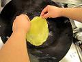 ねじってひとつにし、さらに延ばす。(延ばすたびにひねる方向を変える)これを5〜6回繰り返す。