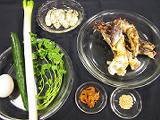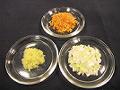 干しエビ、しょうがはみじん切りにする。白ねぎ1/2本はみじん切りにする。