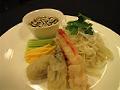 スープ〜レモン汁までを合わせ、干しエビ、しょうが、白ねぎのみじん切りと炒りごまを加える。