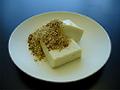 冷やし固めた呉豆腐を3cm角に切り、芝麻糖(すりごまと黒砂糖を1:1で混ぜ合わせる)をたっぷりふりかけてデザートにしてもよい。