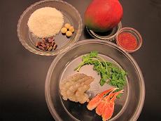 マンゴーとスイートチリソースを混ぜ合わせ、器に盛りつけたカニ爪に添える。