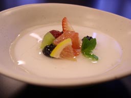 | さて、「北杏南梅」といわれているように杏仁豆腐は中国でも北方のものが有名です。「敬賓酒家」のデザートといえば、「タピオカ入りココナッツジュース」。上等になるとツバメの巣や角切りにしたメロンを加えるのです。「杏仁豆腐」は出してなかったですね。杏の仁、水、米をミキサーにかけて沸かして砂糖を加え、中にゴマ餡の白玉団子を浮かべた「杏仁茶」はメニューにありましたが。 |