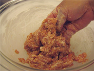餃子の餡に限らず点心の餡を作るときは、先ず肉系の材料をよく練り粘りを出しましょう。しっかり粘りを出さないと調味料やスープを吸収してくれません。粘りが出たら調味料を加えるのですが、ここで注意!調味料と野菜は一緒に加えない事。野菜から水分が出て餡がゆるくなり、包む作業が難しくなります。肉に調味料を全部吸わせたら、その次に野菜をざっくりと混ぜます。それとゴマ油やねぎ油は最後に加えてやさしく混ぜて下さい。そのほうが絶対香りがたちますから。