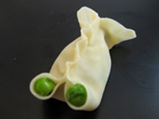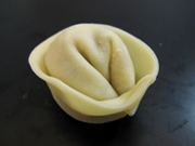 まゆ毛形・・・まゆ毛に似た形で、細かい縄目で口を閉じているのが特徴。蒸し餃子、揚げ餃子に使われます。長い眉毛は長寿の象徴、そういえば仙人も眉毛が非常に長いですね。