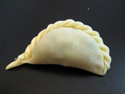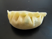 水餃子形・・・本場、中国では水餃子が一般的。皮を折りたたんで周囲を押さえただけのすごくシンプルな包み方で、指紋の跡がつきます。もともと餃子の形は馬蹄銀という昔の中国のお金を模していたそうです。お金が入ってくるとか、また餃子という文字の中には子孫繁栄へとつながる意味もあり、双方の意味も踏まえて、中国北方では春節(旧正月)に欠かせなく、家族みんなが集まる時に良く作られるようです。