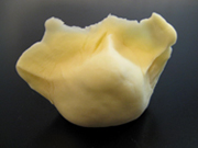 - ☆ 小麦粉に油脂を加えて練る生地・・・固形又は液体の油脂を小麦粉に加えて練るとパイのようなサクサクの食感の皮に仕上げる事が出来るため、揚げ餃子にします。