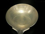 調理用具の形には意味があります。特に鍋は火口の形と関連があります。中国料理は元々竈なので火口が丸く、だから鍋もすんなり収まりがつくように丸いのです。また丸い形は熱効率もよく、しかも均一に熱を伝える事ができます(図1、2)。辻調中国料理班で使用する中華鍋ですが、20年間使い続けているものがあります。中華鍋は、現在鉄板を機械でプレスして作ったりもしますが、昔ながらの金鎚で叩き、打ち出して作ったものも健在です。それらは叩く事により、鉄が固くしまり、また丸い形は外からの力に強く、へこみにくいのでかなり長持ちします。
