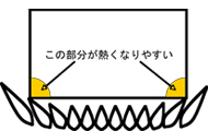図1 普通の鍋 底が平たい 鍋の温度にムラができる |
