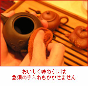 | 「土俵際の茶藝芸人」という名の通り、中国茶にどっぷりつかっています。なぜ中国茶藝に足を踏み入れたかは前回(「酢豚」コラム参照)お話しました。香港で研修したせいか、中国でよく飲まれている緑茶より、ウーロン茶やプーアル茶のおいしさにはまってしまいました。おいしいプーアル茶にはなかなか出会えません。茶葉の過ごしてきた年月により、味が異なるので、試してみないと分かりません。 |