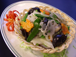 林先生の受賞料理「泮水素芹香」(五目野菜の炒めもの)を初めて見た時に、私は正直な所、「これが?」と思いました。華やかさに欠け、創意工夫もないように思われたのです。ところが、食べてみてびっくり。普通の塩味炒めなのですが、それぞれ素材の味を殺さず、それぞれの素材の食感をいかし、噛んだときの絶妙な歯ごたえに驚きです。野菜の切り方に工夫があり、計算された味付け、食感には目から鱗が落ちる思いでした。