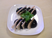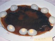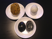 日本では卵と言えば鶏の卵、鶉の卵が食用としてあげられますが、香港では鶏、鶉の他に家鴨、鳩(食用バト)の卵があります。加工品になると日本でも知られている皮蛋(ペィタン:家鴨の卵の加工品)、鹹蛋(ハムタン:家鴨の卵の塩漬け)などもあります。皮蛋は香港では 記(ヨンケイ)が一番人気です。黄身の中心はトローリとして濃厚で、嫌なアンモニア臭もありません。香港では甘酢生姜と一緒に食べるのが定番です。