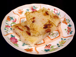 大根もちそのものはあっさりとした味付けの為、お好みの食卓調味料(醤油だれ、チリソース、XO醤)をつけて食べれば大根の旨味がひき立ち、