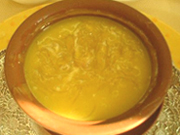 黄燜魚翅(フカヒレの上級スープ煮)をアヒルの骨を丸抜きした中に詰めた料理で、大変手間がかかるため日本においては決してポピュラーではないが、アヒルの味がフカヒレに移り大変美味しかった。店の御主人、 善麟氏の祖父が西太后の食事の管理に携わっていたそうで、宮廷料理の一つといえるだろう。食事を終えた後に話を伺った。「宮廷料理は素でなければならない。良い材料を選択して、丁寧に料理を作り、味は甘すぎず、濃すぎず、塩辛すぎず、油っぽくならないことが大切である」と 氏は力説した。一人200元〜2,000元(日本円で3,000円〜30,000円)で、私達が食べたのは1人500 元(日本円で7,500円)のコース。